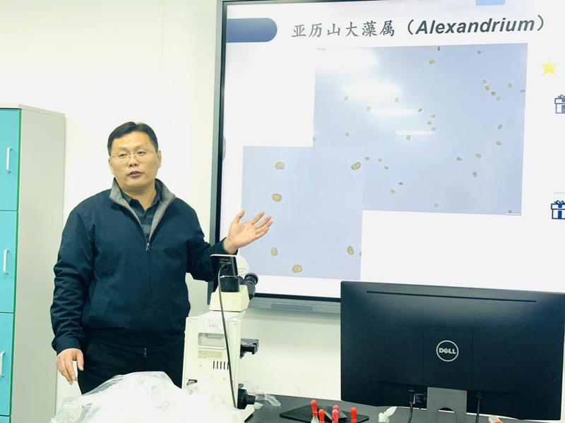 课堂上,刘晓收教授深入浅出地向同学们介绍了绿藻、甲藻和硅藻等常见单细胞藻类的形态与结构特点。